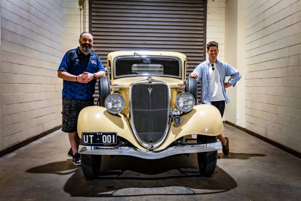 On 18 December 2025, Autoplex had the pleasure of welcoming two of Lewis Bandt’s grandsons – Brad Smith and Joseph Griffiths – to Castlemaine to inspect a replica of the 1934 Ford Coupe Ute designed by their grandfather Lewis [Lew] Bandt, now in the care of Autoplex. Brad recalled some fond memories of visiting his